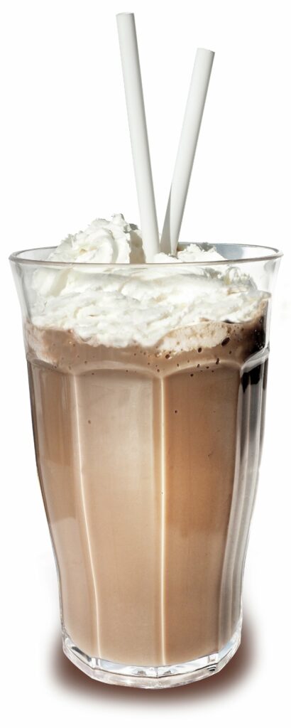 Mélanger les carrés de chocolat avec la boule de chocolat et le lait au mixer pendant 1 min maximum. Ajouter le mélange dans un verre, mets une pincée de sucre et mélange avec une cuillère, puis mets de la crème